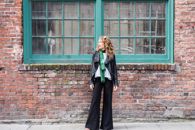 A wide leg pant paired with heels - be it wedges, heeled boots or this season's stacked heel - is a classic look that gives your legs flattering length. My favorite look for this summer will be platform sandals with a simple tank top and statement jewelry.